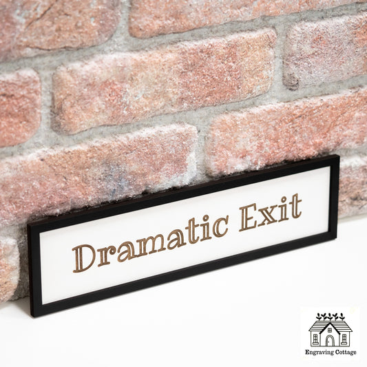 Dramatic Exit Wooden Engraved Framed Sign Entryway Hallway Door Sign Painted Black Wood Frame
