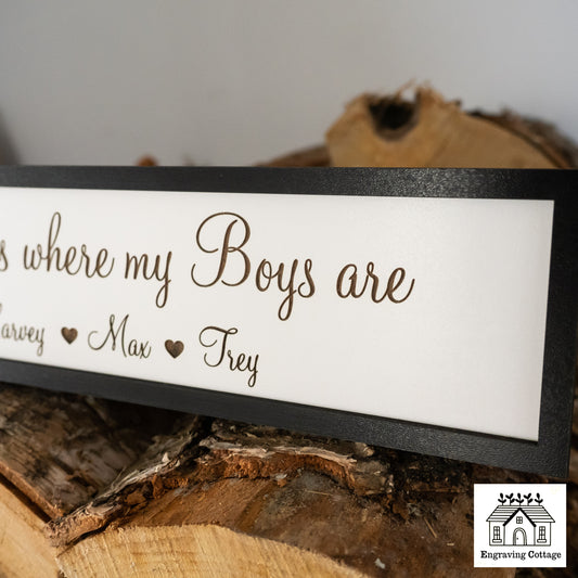 Home Is Where My Boys Are Wooden Sign For Home Cute Small Family Sign Gift