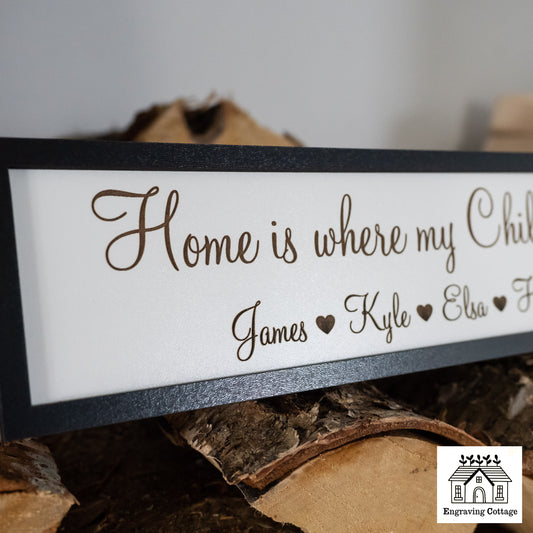 Framed Home Is Where My Children Are Painted Wooden Sign For Home Cute Small Family Sign