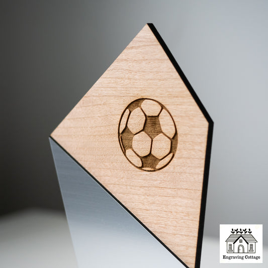 Wooden Football Trophy Award With Logo & Wording For Schools, Football Clubs, Academy, Corporate Award