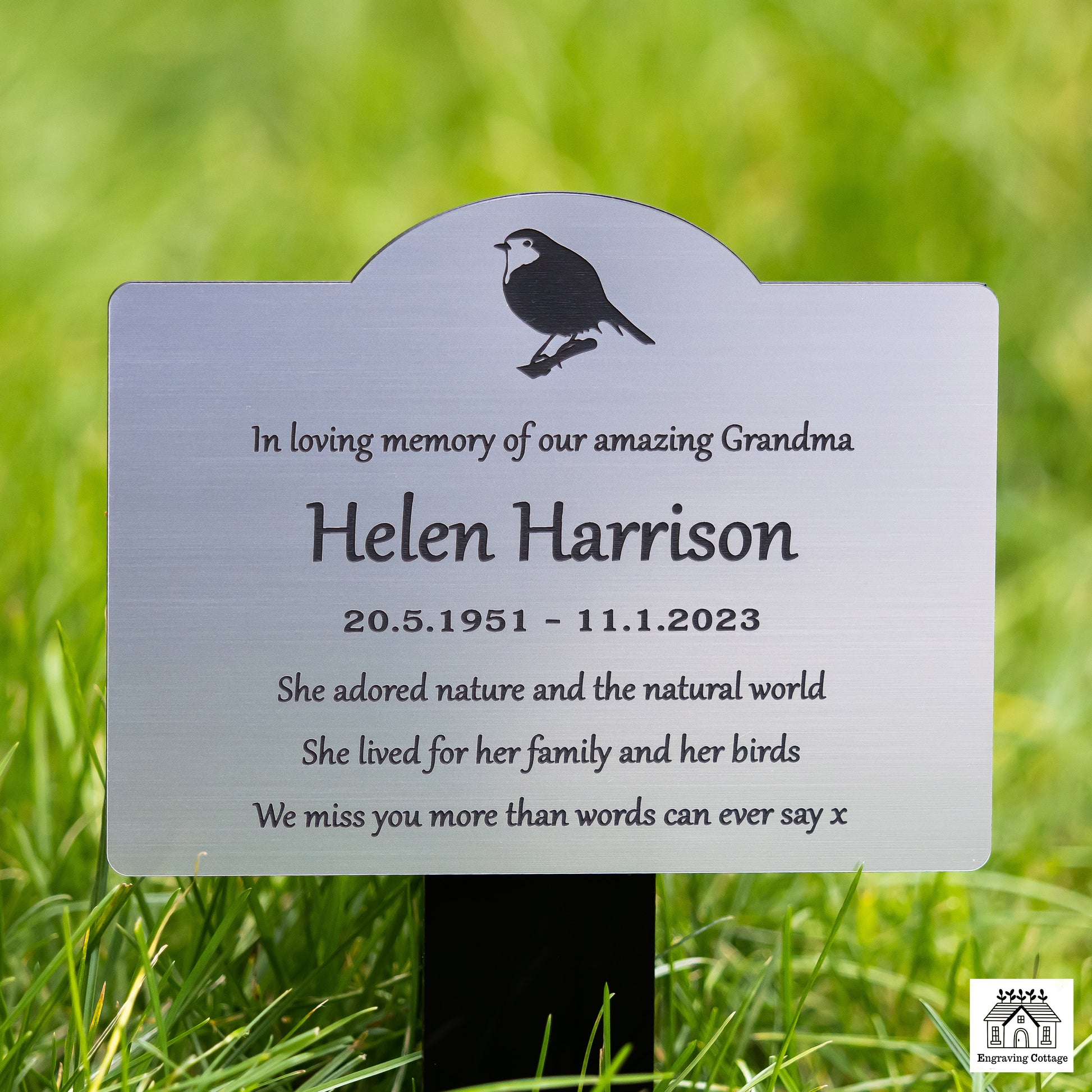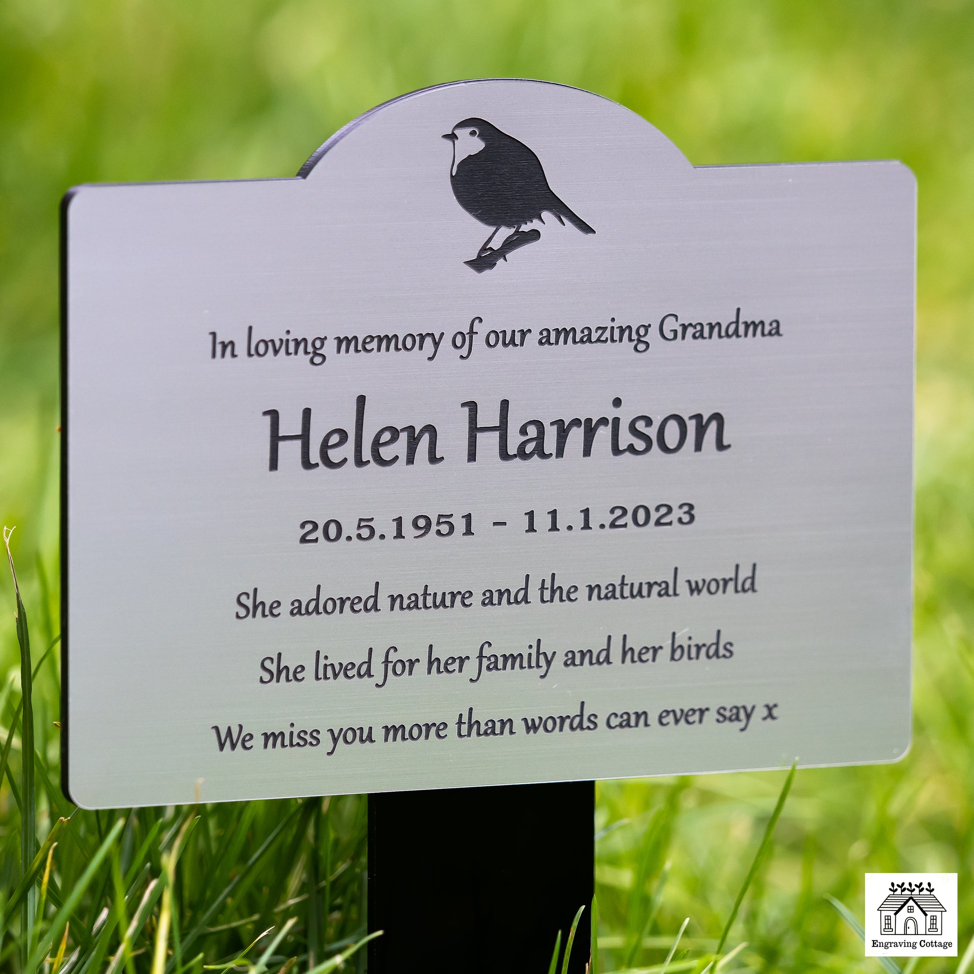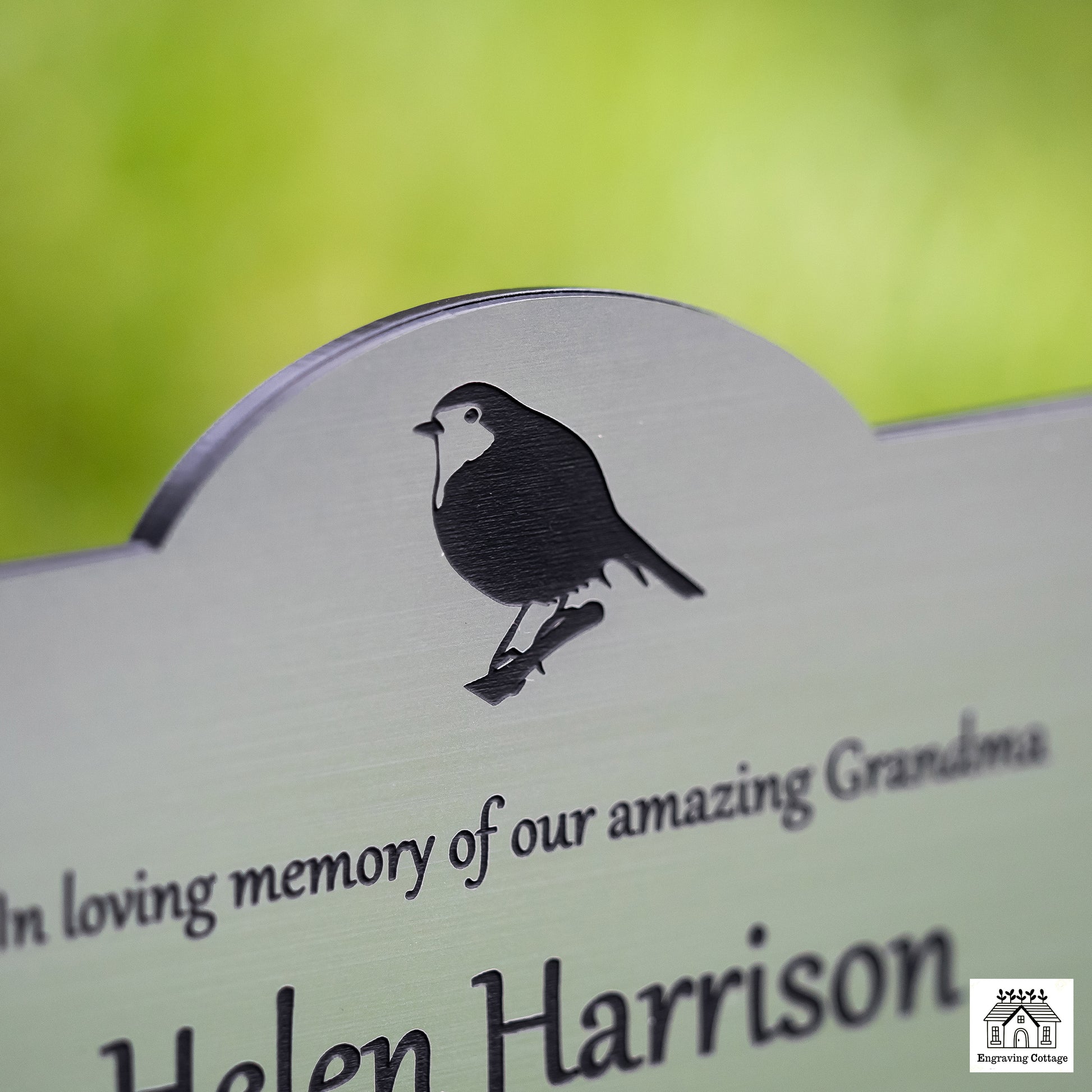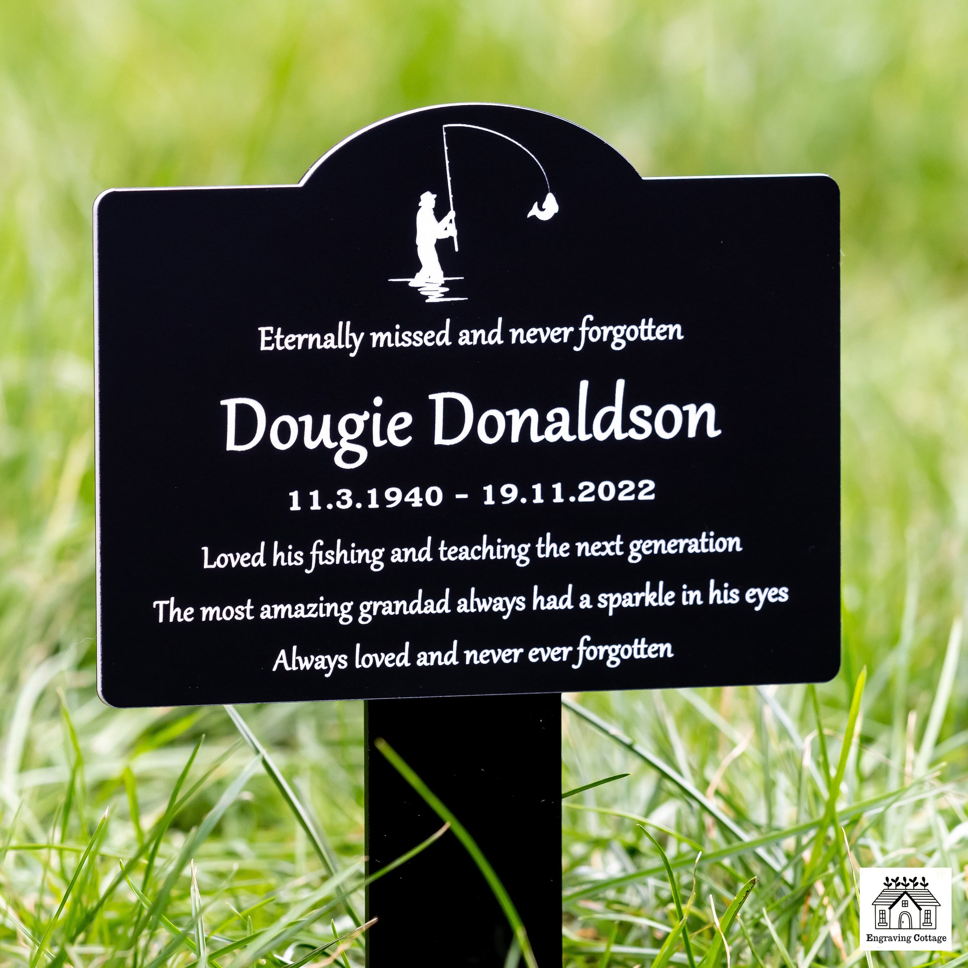 Our grave / tree markers are professionally engraved with a words and design of your choice, this marker is available in a variety of colors including gold, silver, and black, and is made from durable and high quality metallic finish weatherproof acrylic.
