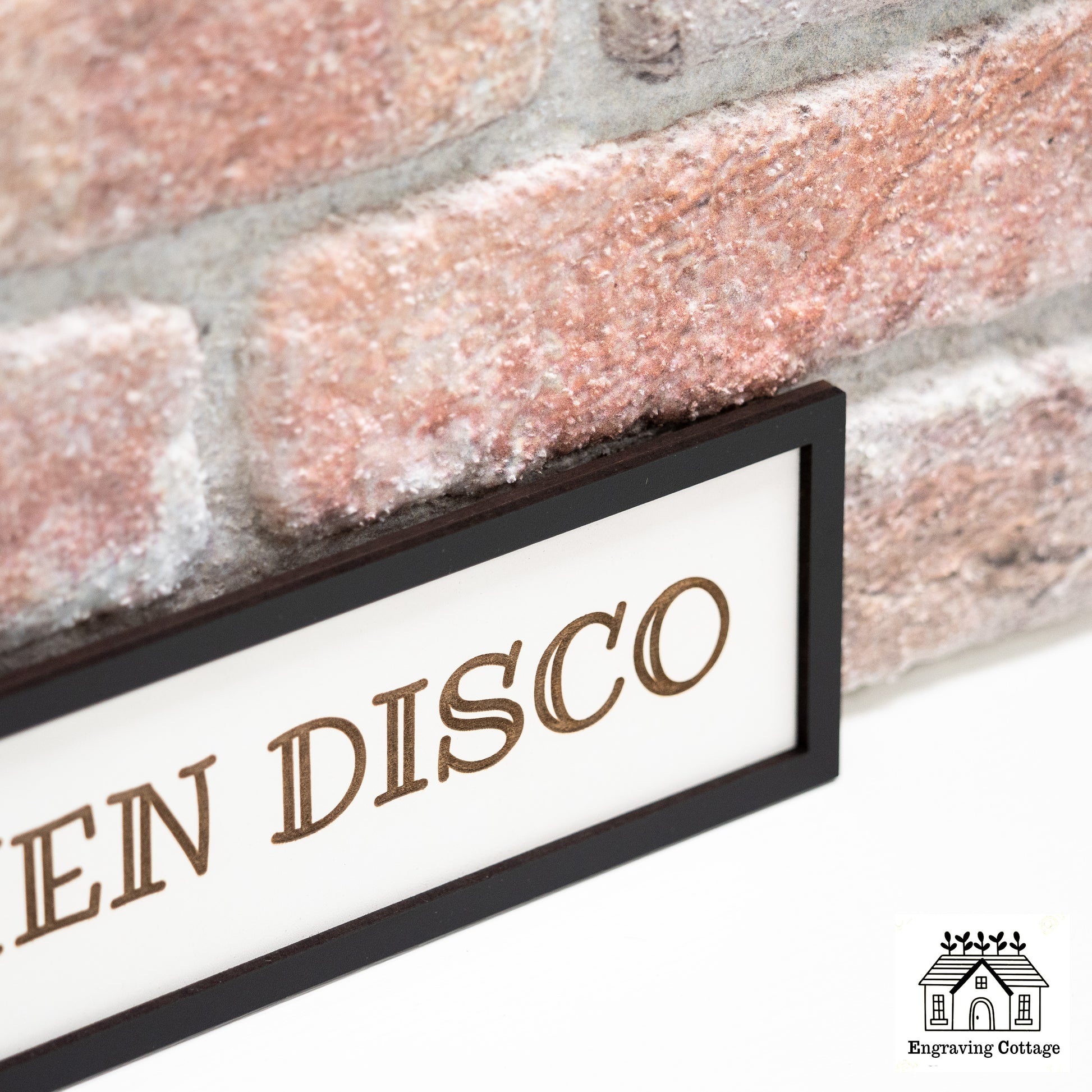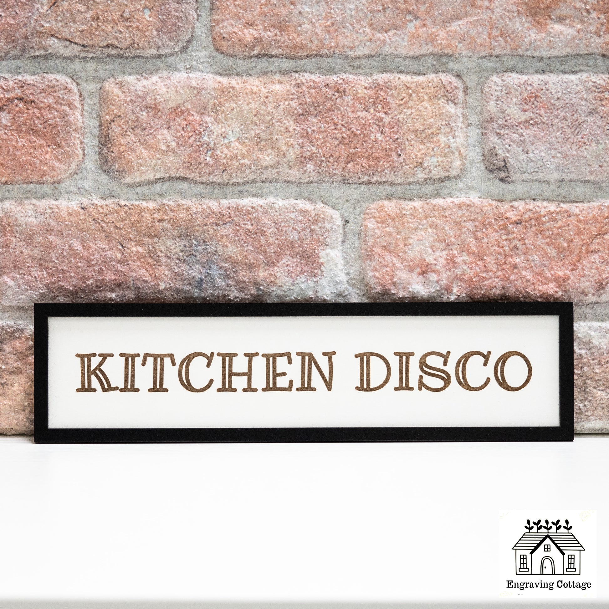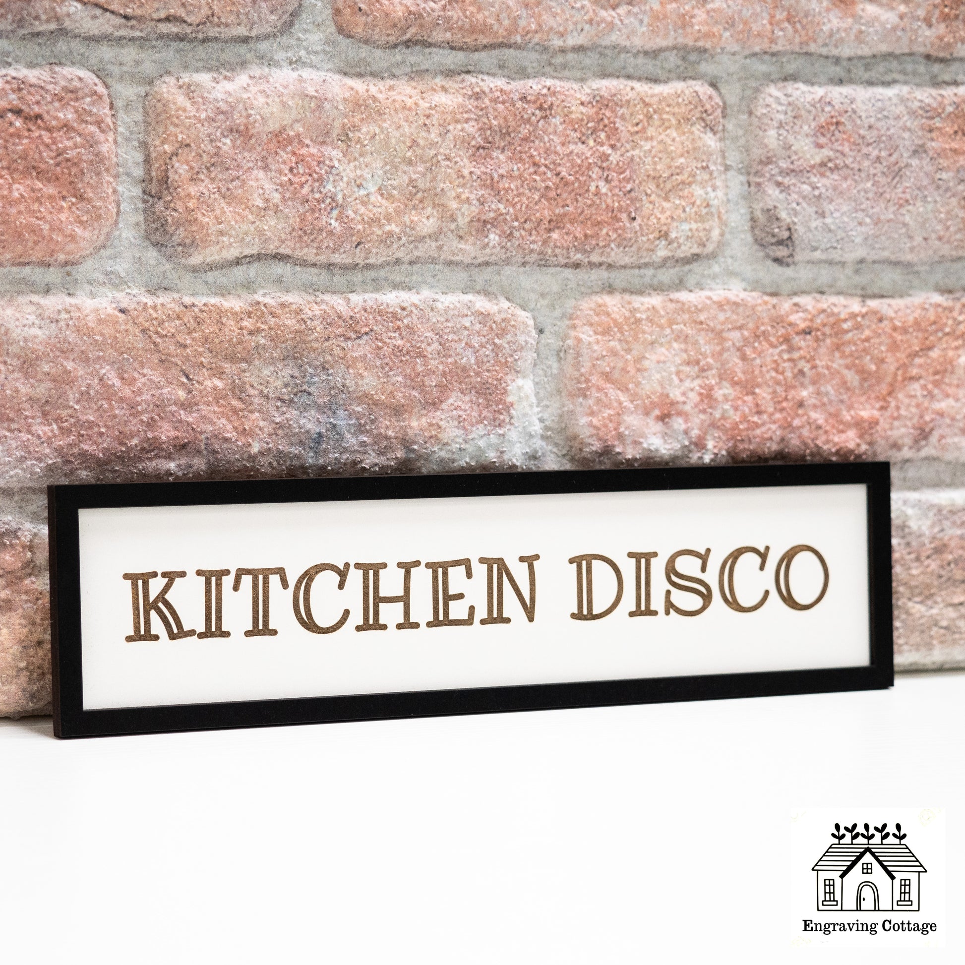Kitchen Disco Wooden Engraved Framed Kitchen Sign Painted Black Wood Frame House Warming Funny Gift