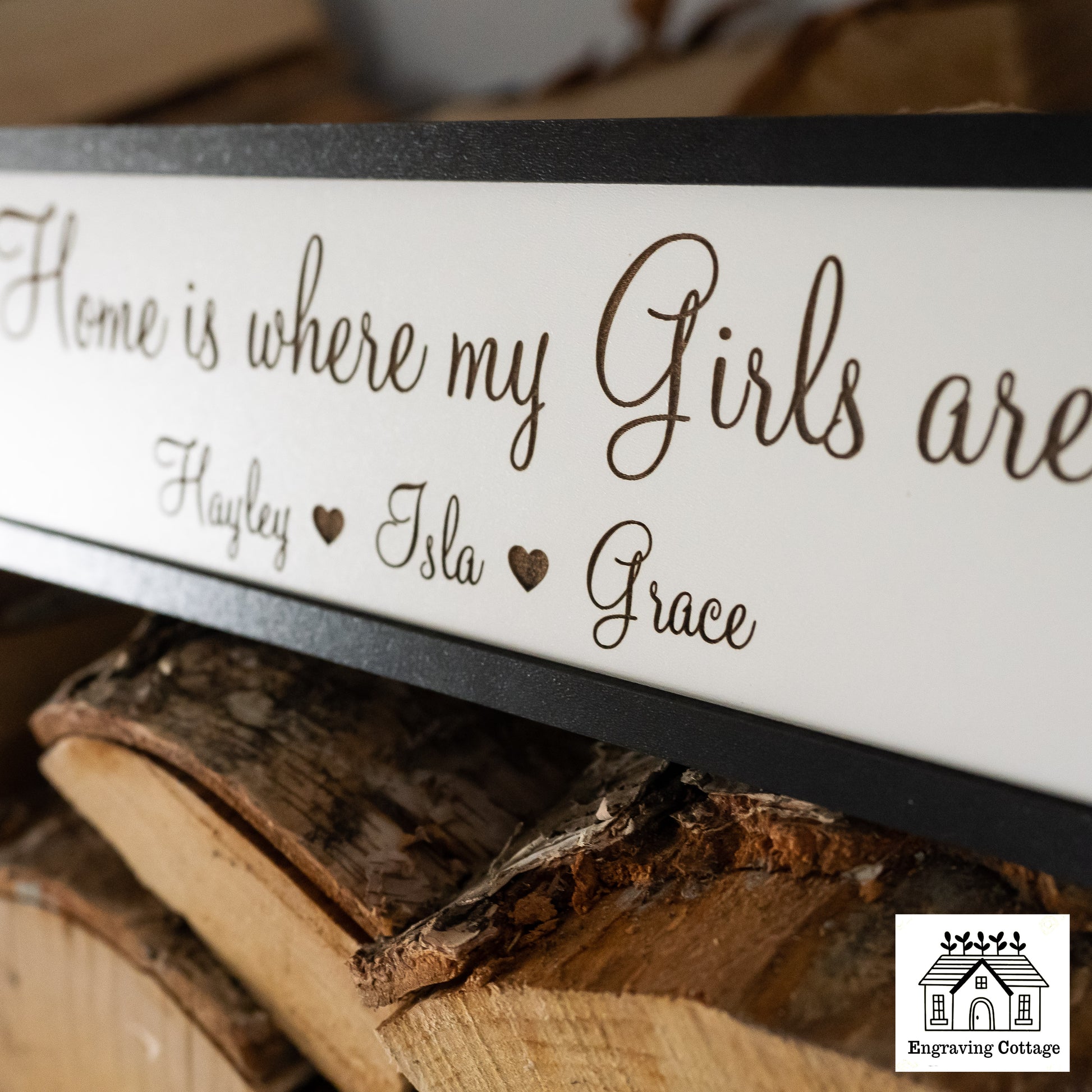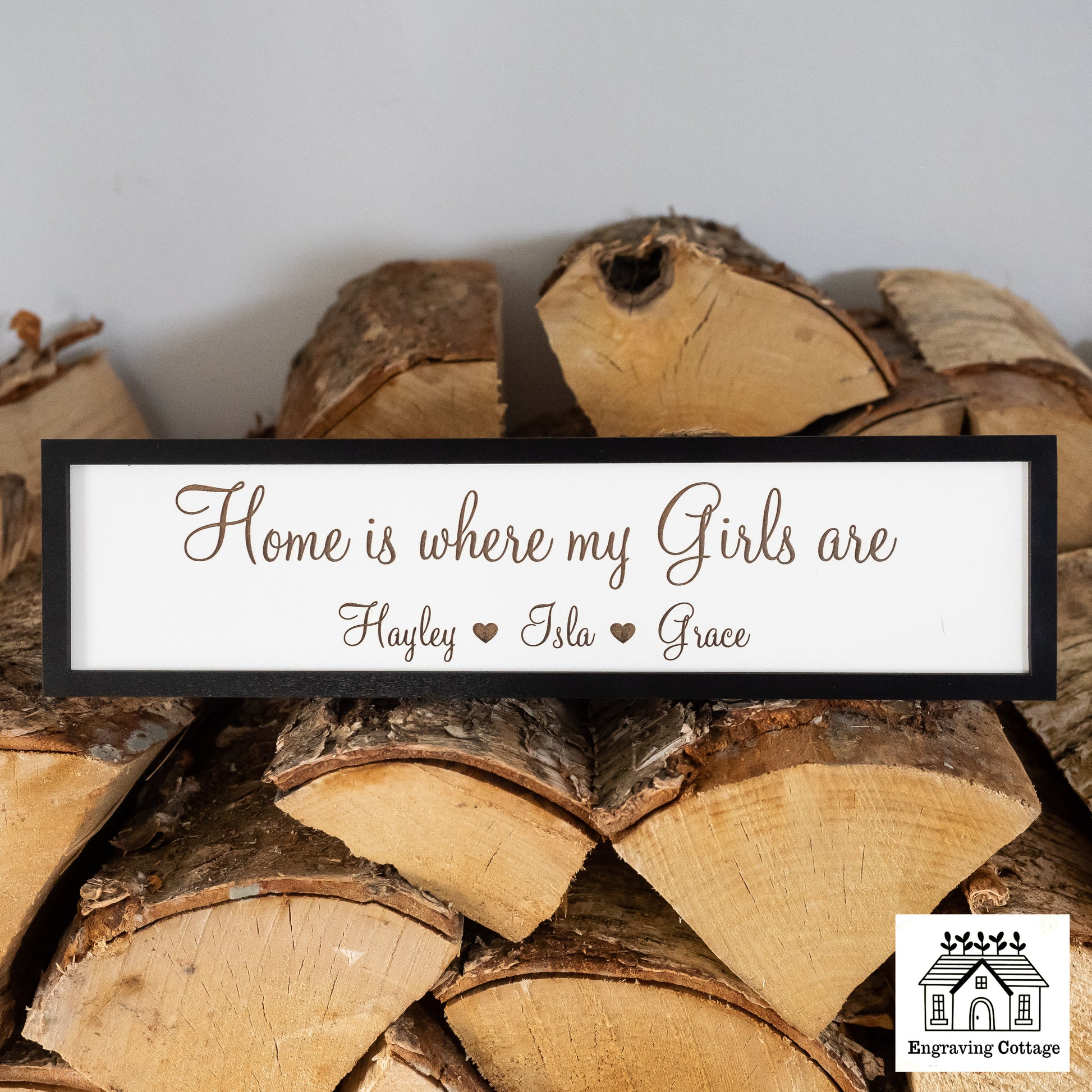 Home Is Where My Girls Are Wooden Sign For Home Cute Small Family Sign Gift