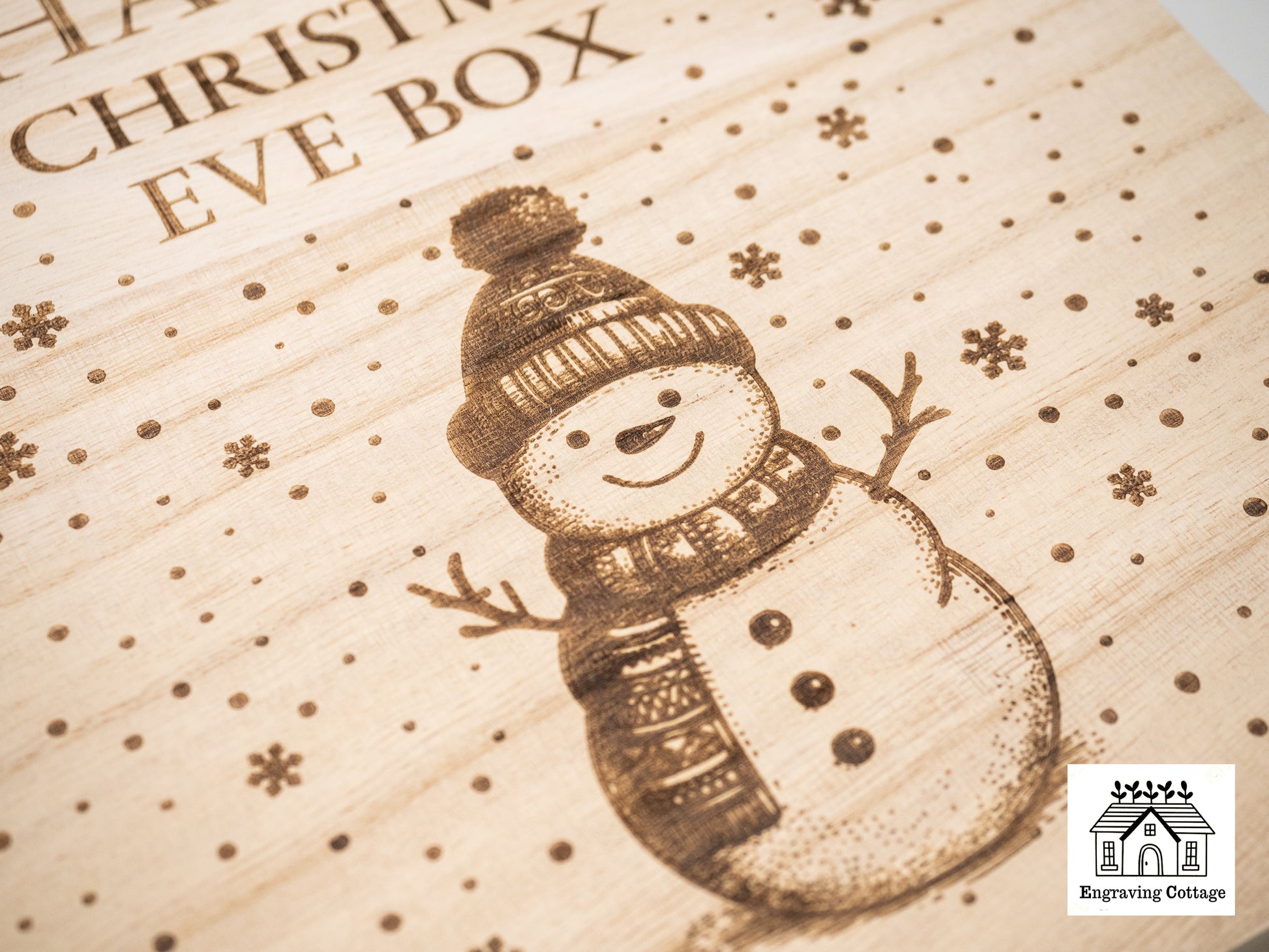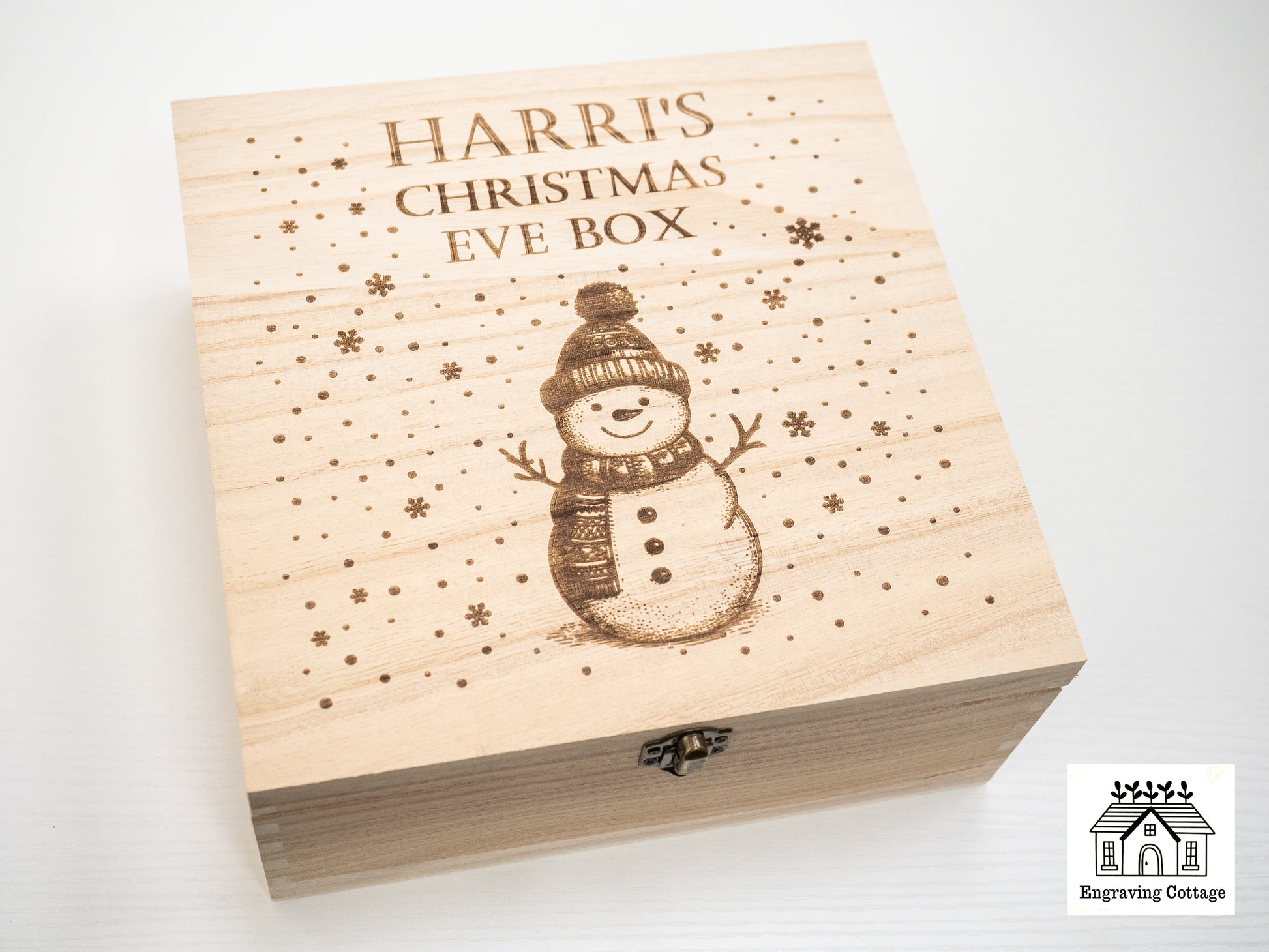 Luxury Engraved Christmas Eve Box Children's Gift Ready To Fill Stocking Filler With Snowman Design