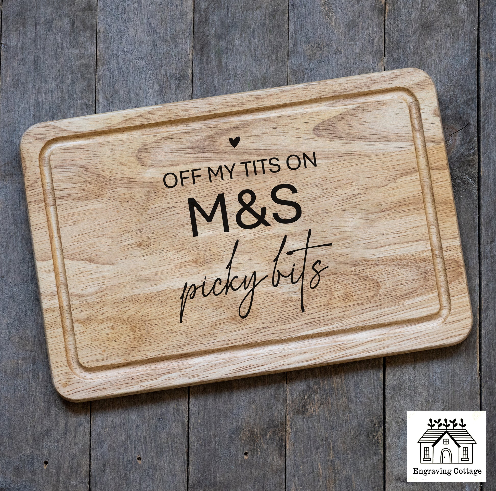 Off My T*ts On M&S Picky Bits Chopping Board Funny Foodie Gift, Charcuterie / Cheese Board For Girlfriend, Boyfriend, Friend, Christmas