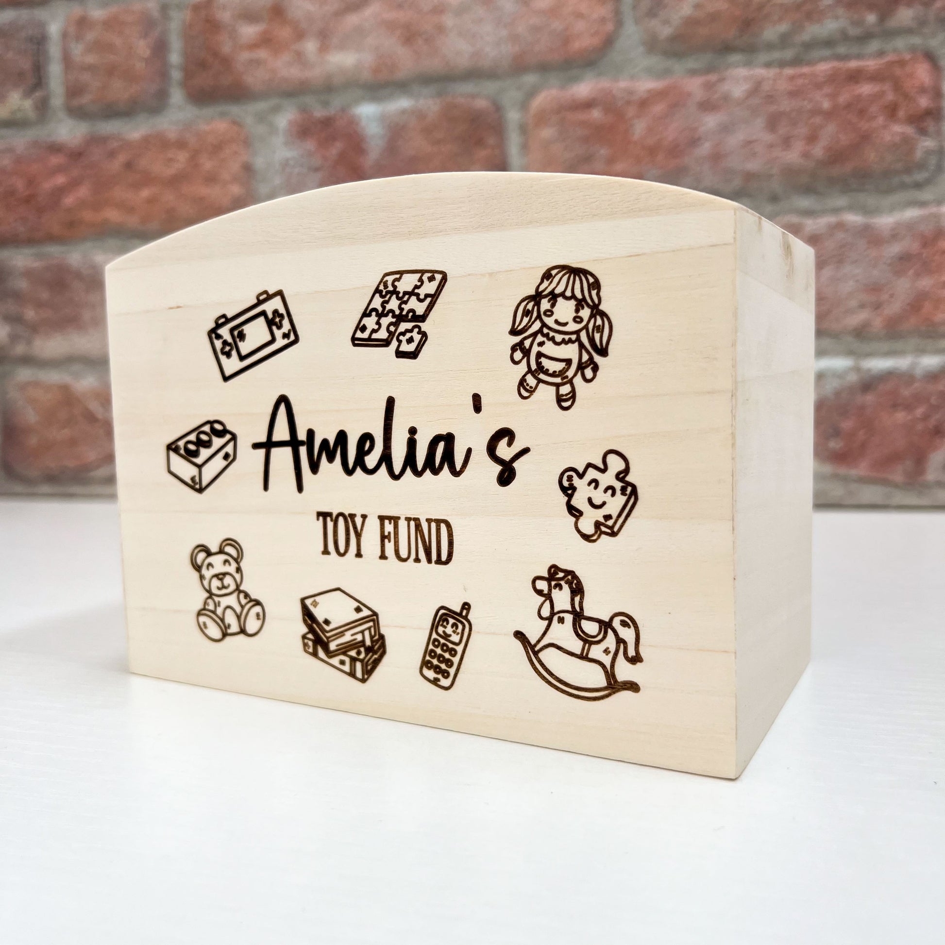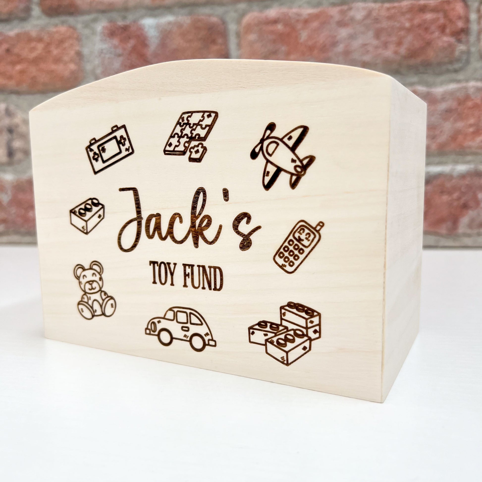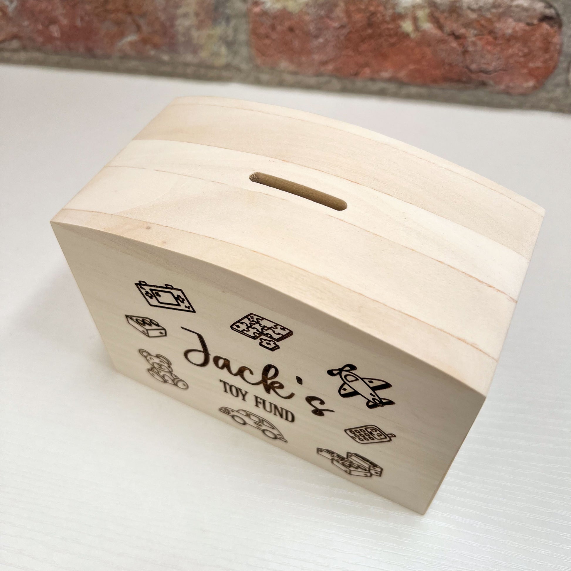 Teach your little one the joy of saving with this charming Personalised Engraved Wooden Money Box! Lovingly engraved by our small family business, this high-quality money box is designed to make saving fun and special for children.