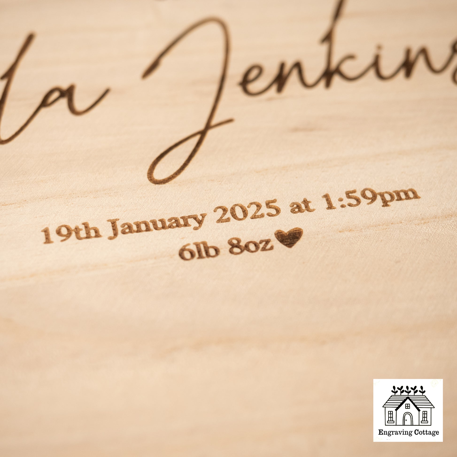 Welcome your little bundle of joy with this adorable Personalised Wooden Baby Memory Box—the perfect place to tuck away all those tiny treasures and first memories.